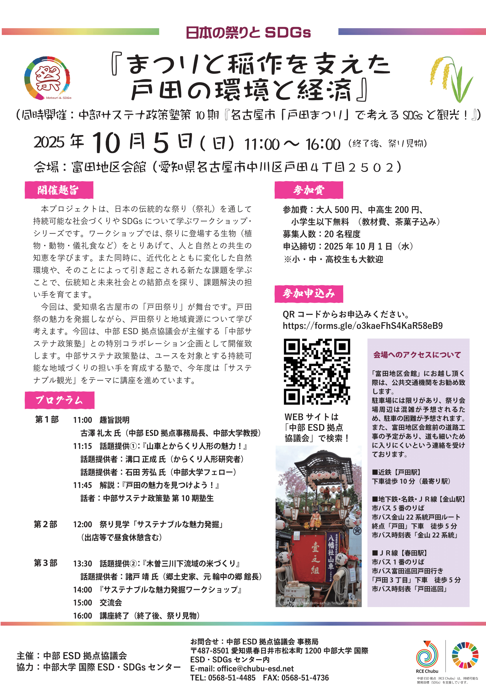 *同時開催:中部サステナ政策塾第10期『名古屋市「戸田まつり」で考えるSDGsと観光!』