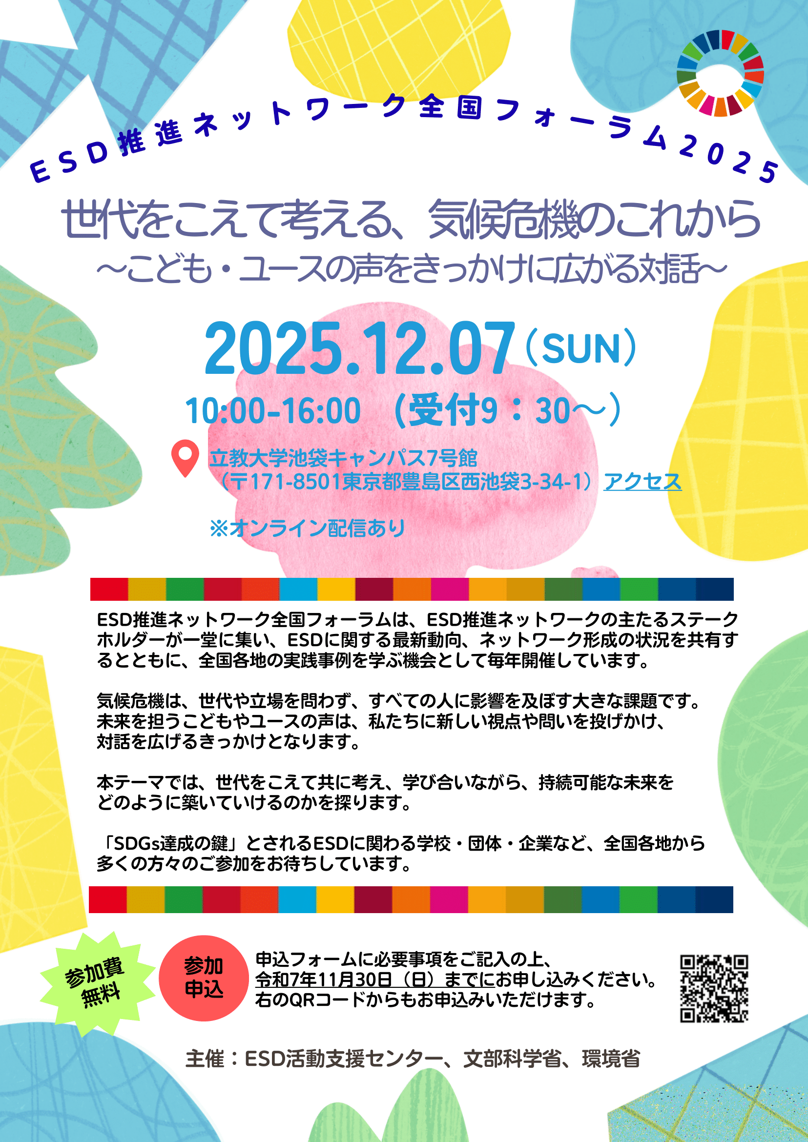 「SDGs達成の鍵」とされるESDに関わる学校・団体・企業など、全国各地から多くの方々のご参加をお待ちしています。