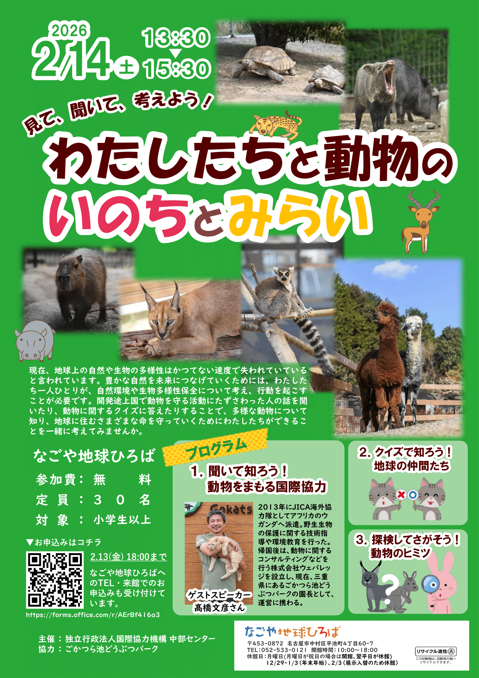 JICA中部は、「見て、聞いて、考えよう!わたしたちと動物のいのちとみらい」を開催します。